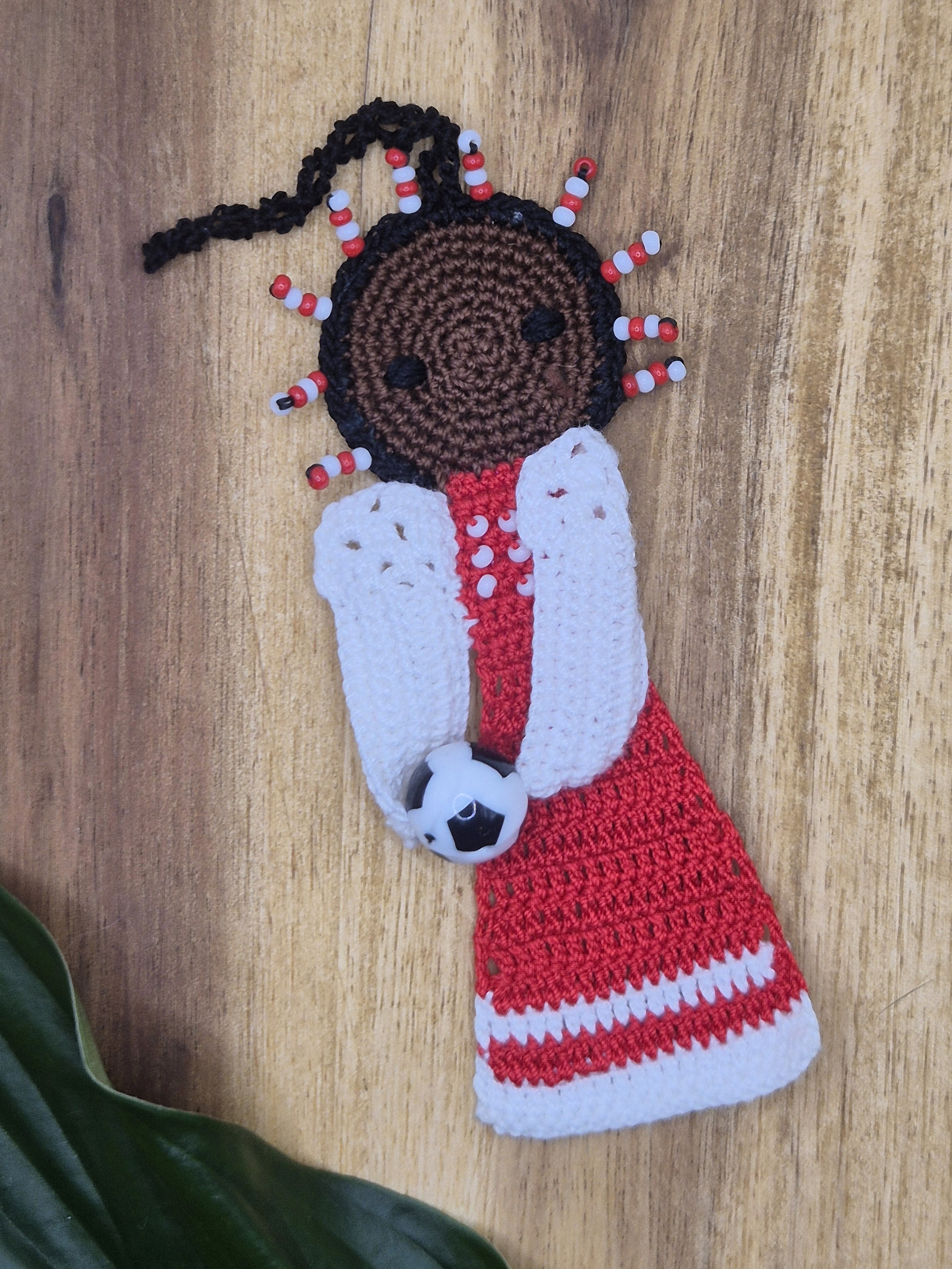 Ein einzelner Fußball-Engel in weiss/rot