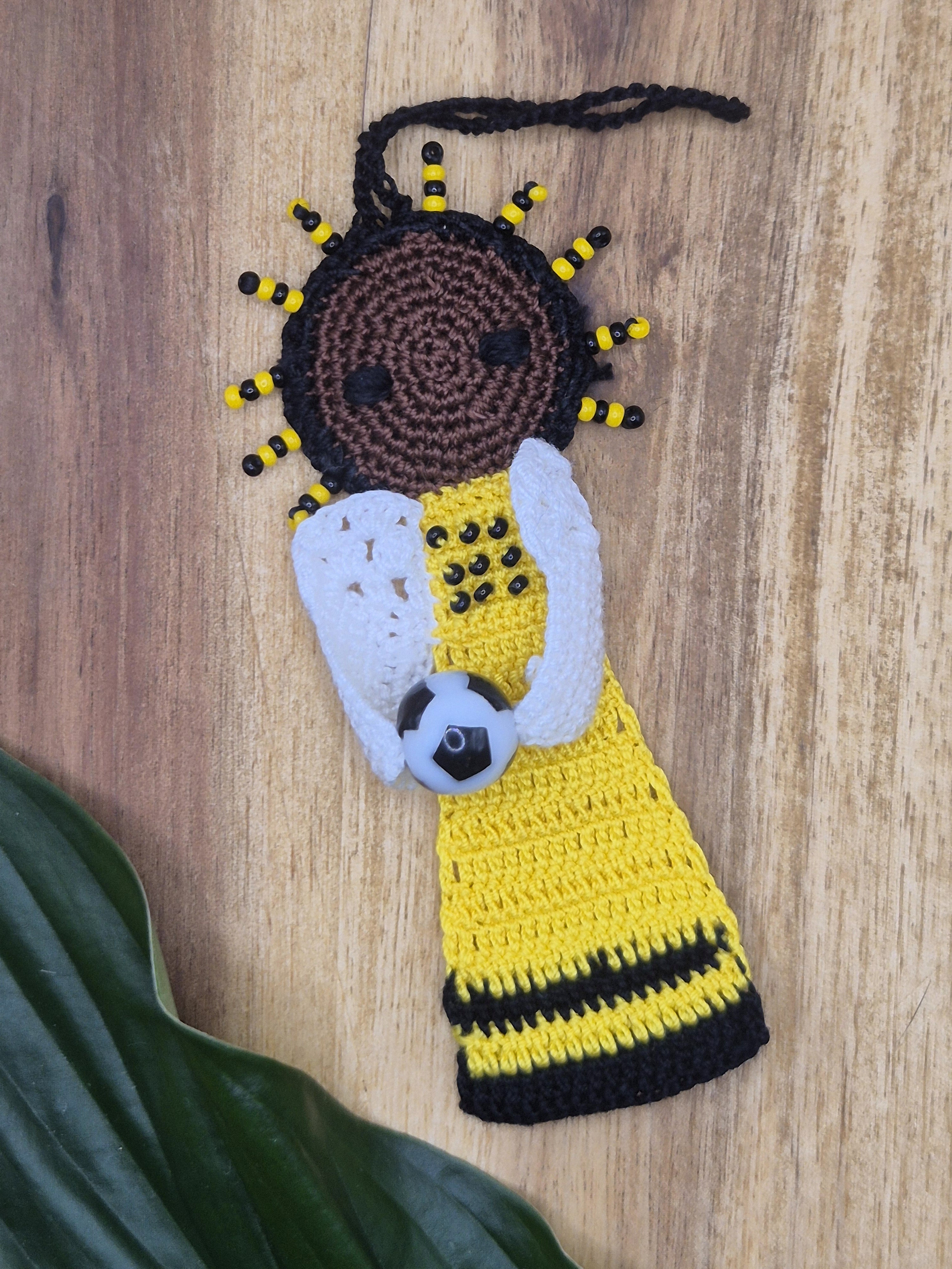 Ein einzelner Fußball-Engel in gelb/schwarz.