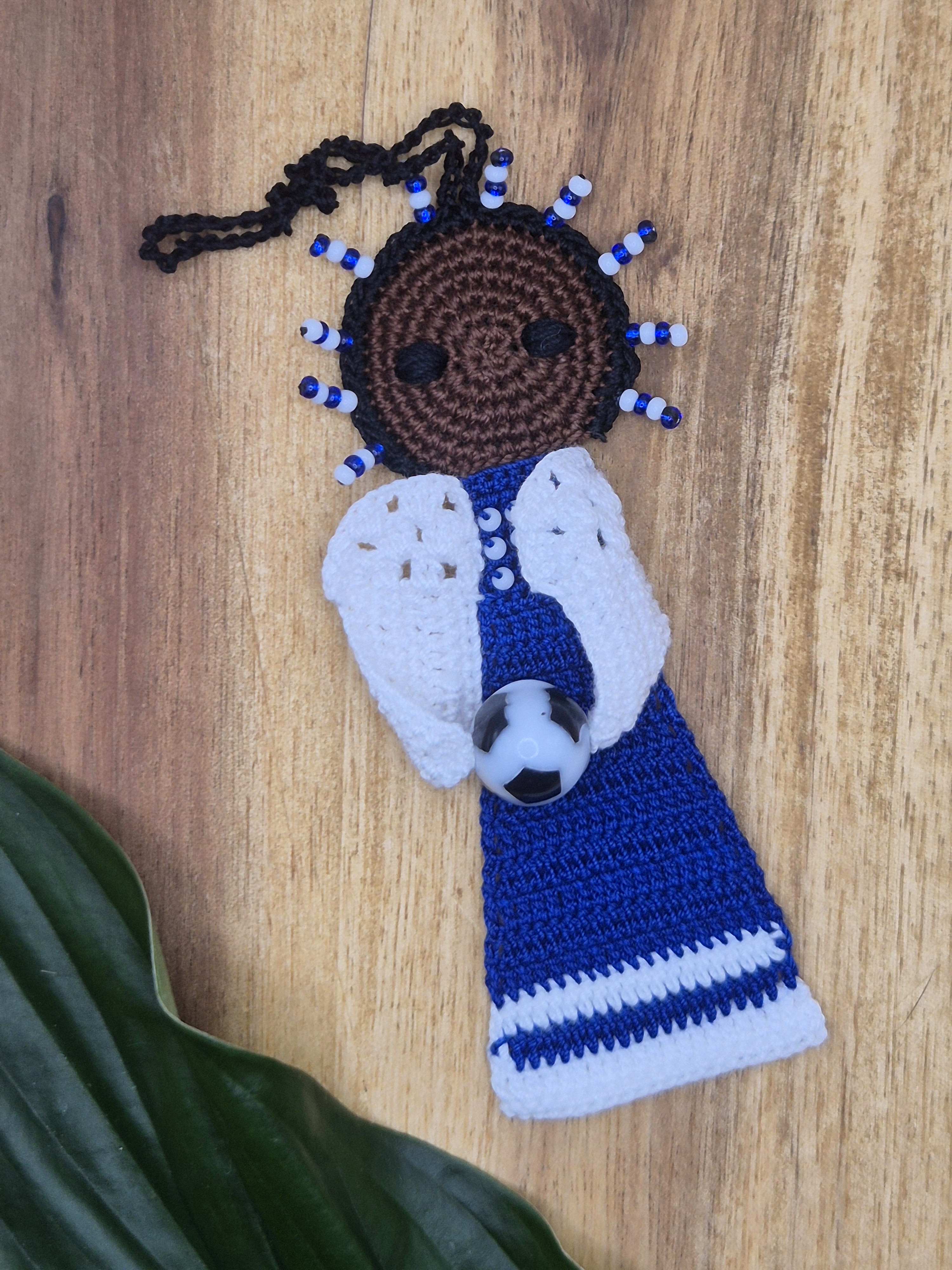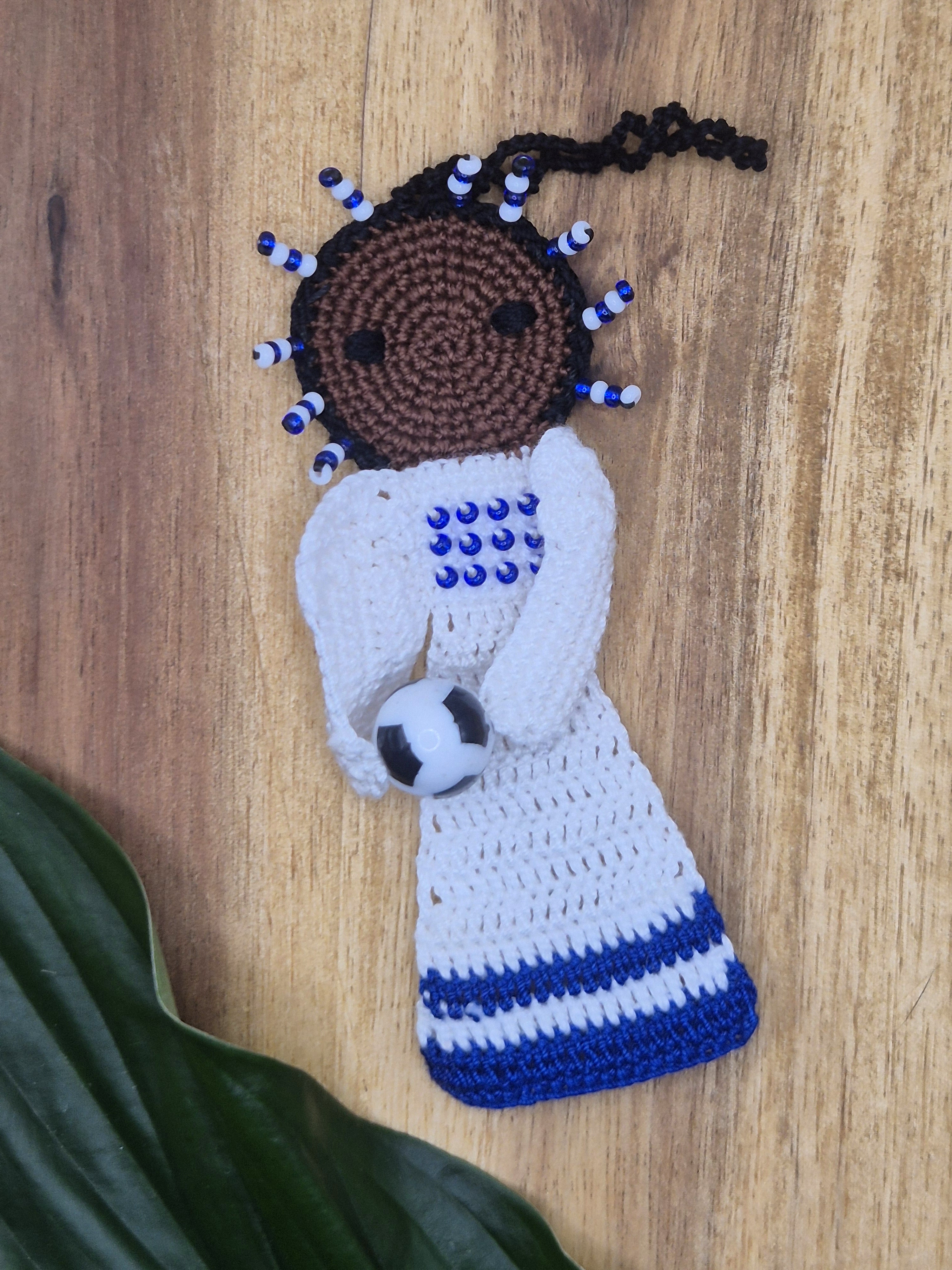 Ein einzelner Fußball-Engel in blau/weiß.