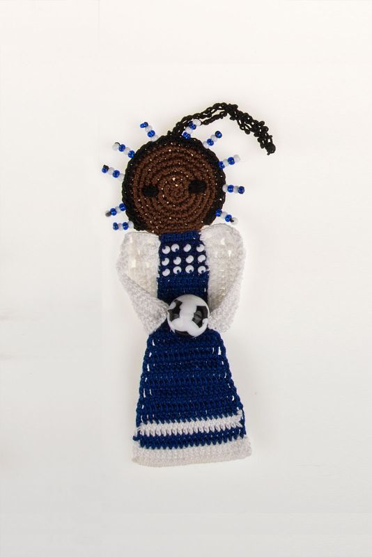 Perlen, mit denen die Engel geschmückt werden sind sogenannte „Maasai-beads“, also Perlen, die auch die Maasai verwenden, um ihren traditionellen Schmuck herzustellen. Diese Perlen kaufen wir in Mombasa und jede neue Farbkombination von Perlen auf den Engeln wird von Christine Rottland persönlich ausgesucht.