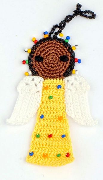 Perlen, mit denen die Engel geschmückt werden sind sogenannte „Maasai-beads“, also Perlen, die auch die Maasai verwenden, um ihren traditionellen Schmuck herzustellen. Diese Perlen kaufen wir in Mombasa und jede neue Farbkombination von Perlen auf den Engeln wird von Christine Rottland persönlich ausgesucht.