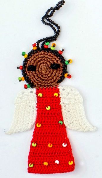 Perlen, mit denen die Engel geschmückt werden sind sogenannte „Maasai-beads“, also Perlen, die auch die Maasai verwenden, um ihren traditionellen Schmuck herzustellen. Diese Perlen kaufen wir in Mombasa und jede neue Farbkombination von Perlen auf den Engeln wird von Christine Rottland persönlich ausgesucht.
