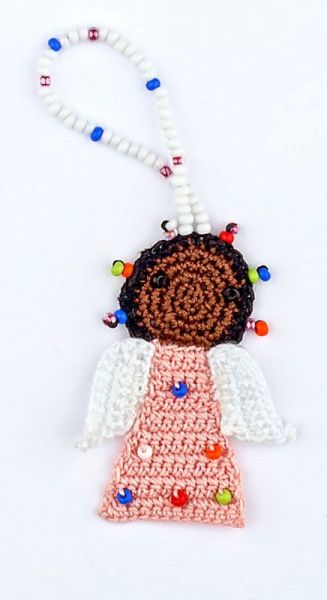 Perlen, mit denen die Engel geschmückt werden sind sogenannte „Maasai-beads“, also Perlen, die auch die Maasai verwenden, um ihren traditionellen Schmuck herzustellen. Diese Perlen kaufen wir in Mombasa und jede neue Farbkombination von Perlen auf den Engeln wird von Christine Rottland persönlich ausgesucht.