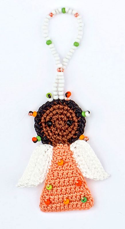 Perlen, mit denen die Engel geschmückt werden sind sogenannte „Maasai-beads“, also Perlen, die auch die Maasai verwenden, um ihren traditionellen Schmuck herzustellen. Diese Perlen kaufen wir in Mombasa und jede neue Farbkombination von Perlen auf den Engeln wird von Christine Rottland persönlich ausgesucht.