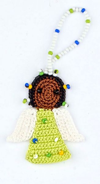 Perlen, mit denen die Engel geschmückt werden sind sogenannte „Maasai-beads“, also Perlen, die auch die Maasai verwenden, um ihren traditionellen Schmuck herzustellen. Diese Perlen kaufen wir in Mombasa und jede neue Farbkombination von Perlen auf den Engeln wird von Christine Rottland persönlich ausgesucht.