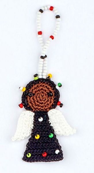 Perlen, mit denen die Engel geschmückt werden sind sogenannte „Maasai-beads“, also Perlen, die auch die Maasai verwenden, um ihren traditionellen Schmuck herzustellen. Diese Perlen kaufen wir in Mombasa und jede neue Farbkombination von Perlen auf den Engeln wird von Christine Rottland persönlich ausgesucht.