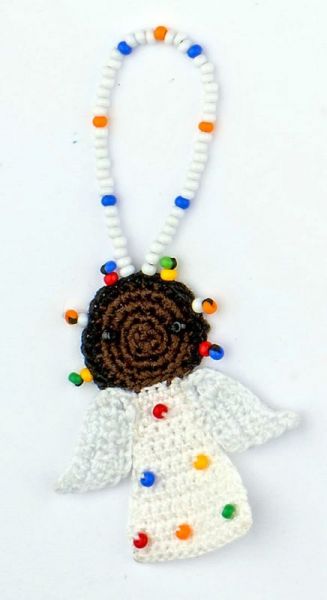 Perlen, mit denen die Engel geschmückt werden sind sogenannte „Maasai-beads“, also Perlen, die auch die Maasai verwenden, um ihren traditionellen Schmuck herzustellen. Diese Perlen kaufen wir in Mombasa und jede neue Farbkombination von Perlen auf den Engeln wird von Christine Rottland persönlich ausgesucht.