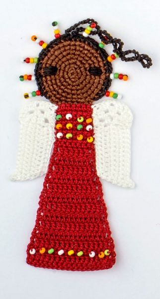 Perlen, mit denen die Engel geschmückt werden sind sogenannte „Maasai-beads“, also Perlen, die auch die Maasai verwenden, um ihren traditionellen Schmuck herzustellen. Diese Perlen kaufen wir in Mombasa und jede neue Farbkombination von Perlen auf den Engeln wird von Christine Rottland persönlich ausgesucht.