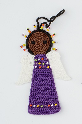 Perlen, mit denen die Engel geschmückt werden sind sogenannte „Maasai-beads“, also Perlen, die auch die Maasai verwenden, um ihren traditionellen Schmuck herzustellen. Diese Perlen kaufen wir in Mombasa und jede neue Farbkombination von Perlen auf den Engeln wird von Christine Rottland persönlich ausgesucht.