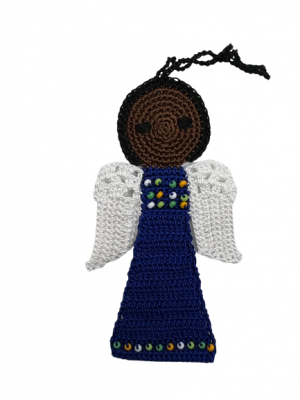 Perlen, mit denen die Engel geschmückt werden sind sogenannte „Maasai-beads“, also Perlen, die auch die Maasai verwenden, um ihren traditionellen Schmuck herzustellen. Diese Perlen kaufen wir in Mombasa und jede neue Farbkombination von Perlen auf den Engeln wird von Christine Rottland persönlich ausgesucht.
